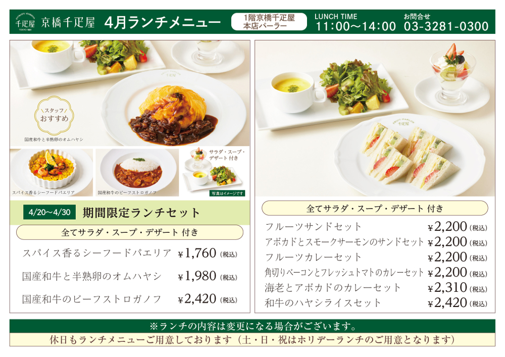 ※メニューは予告なく終了する場合がございます。