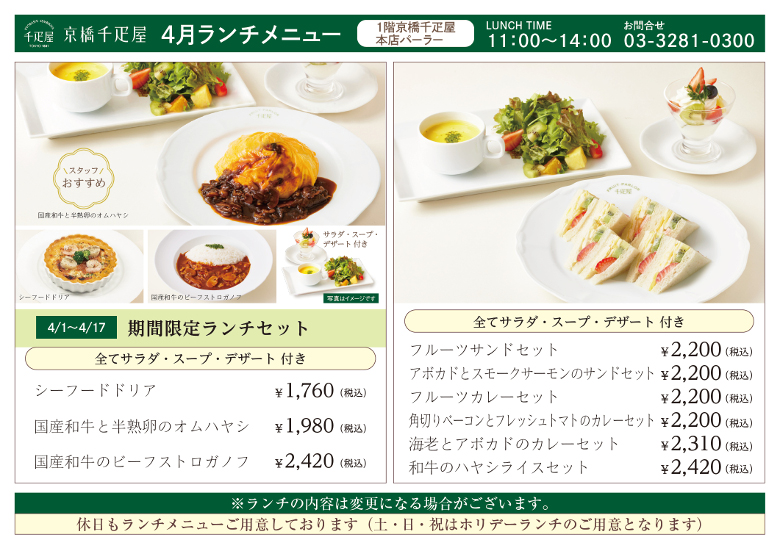 京橋本店のランチメニュー
