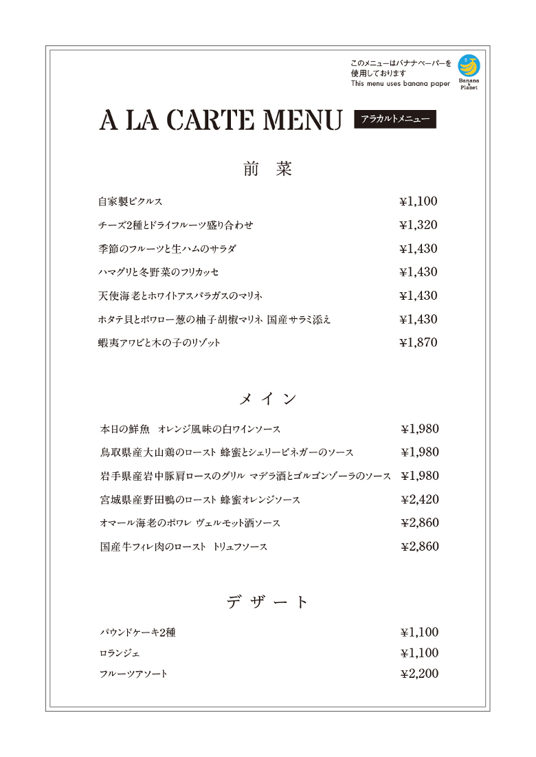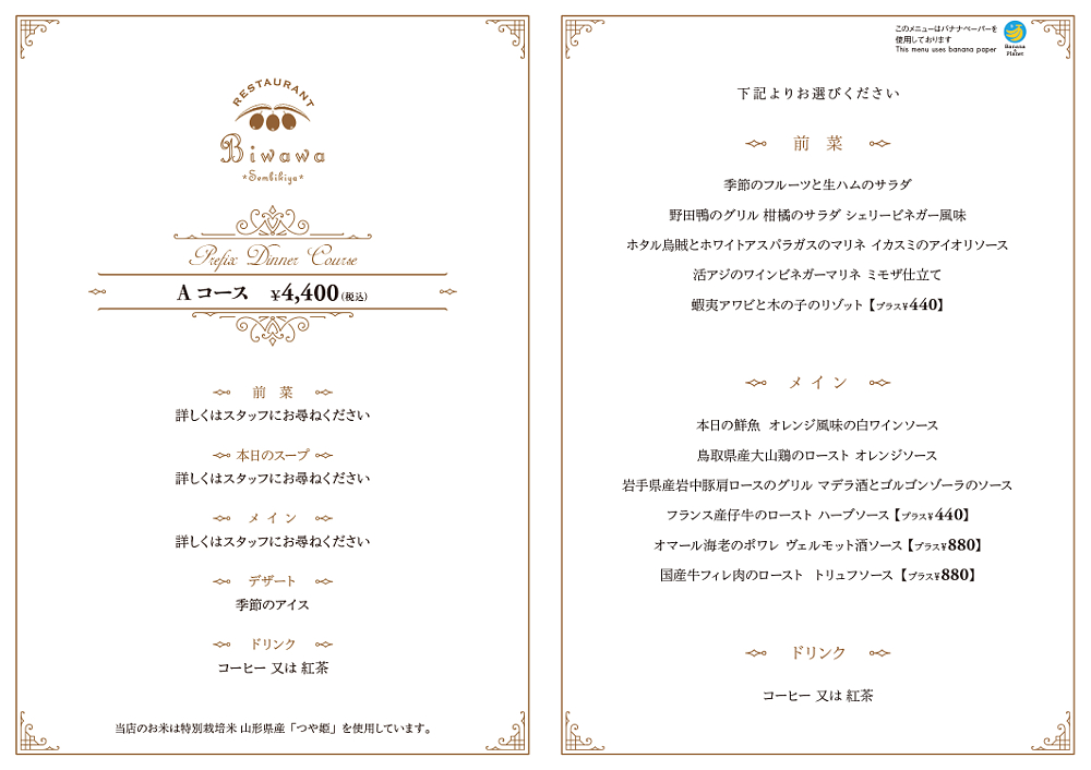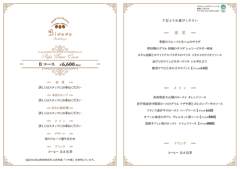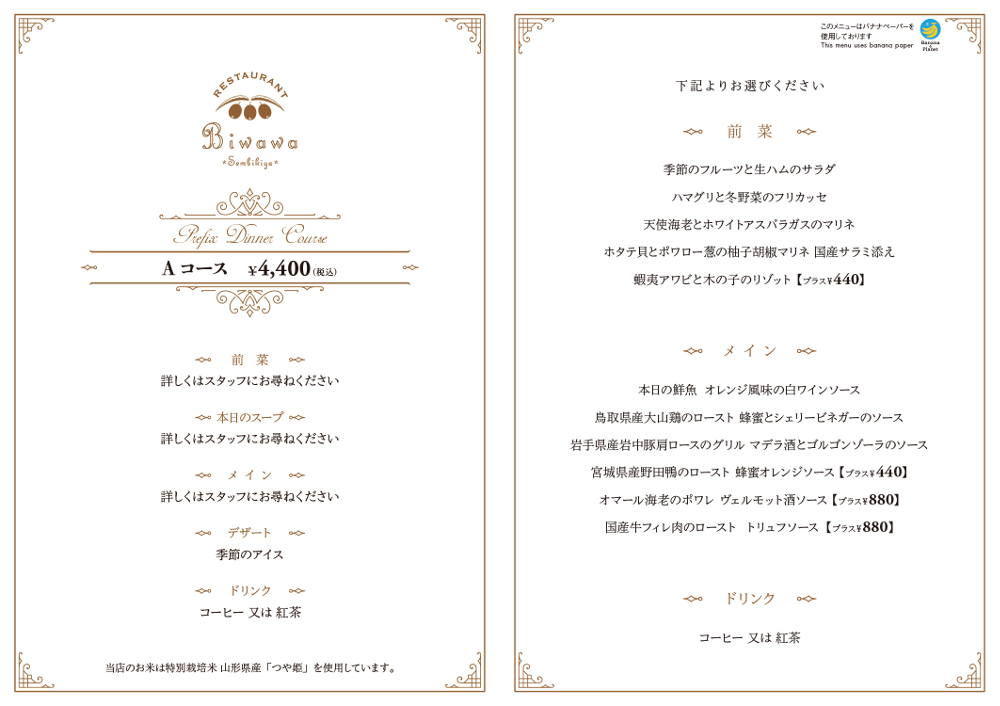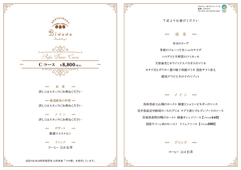 ディナーメニューのご案内