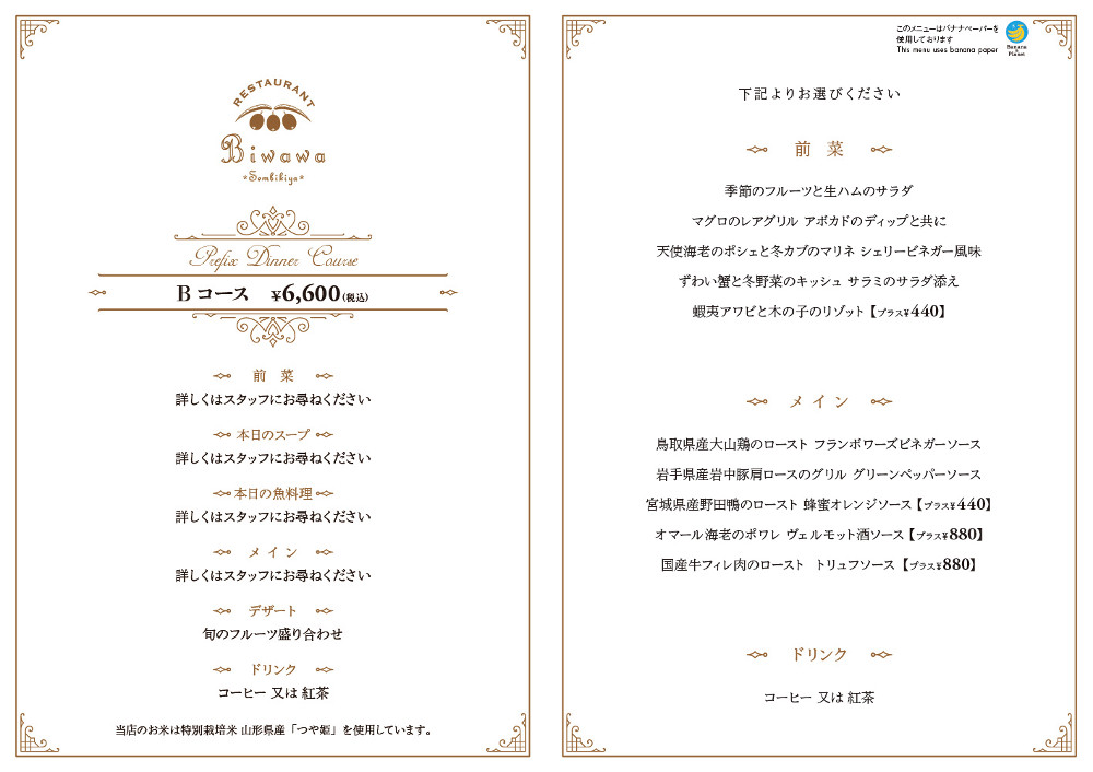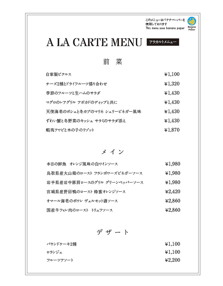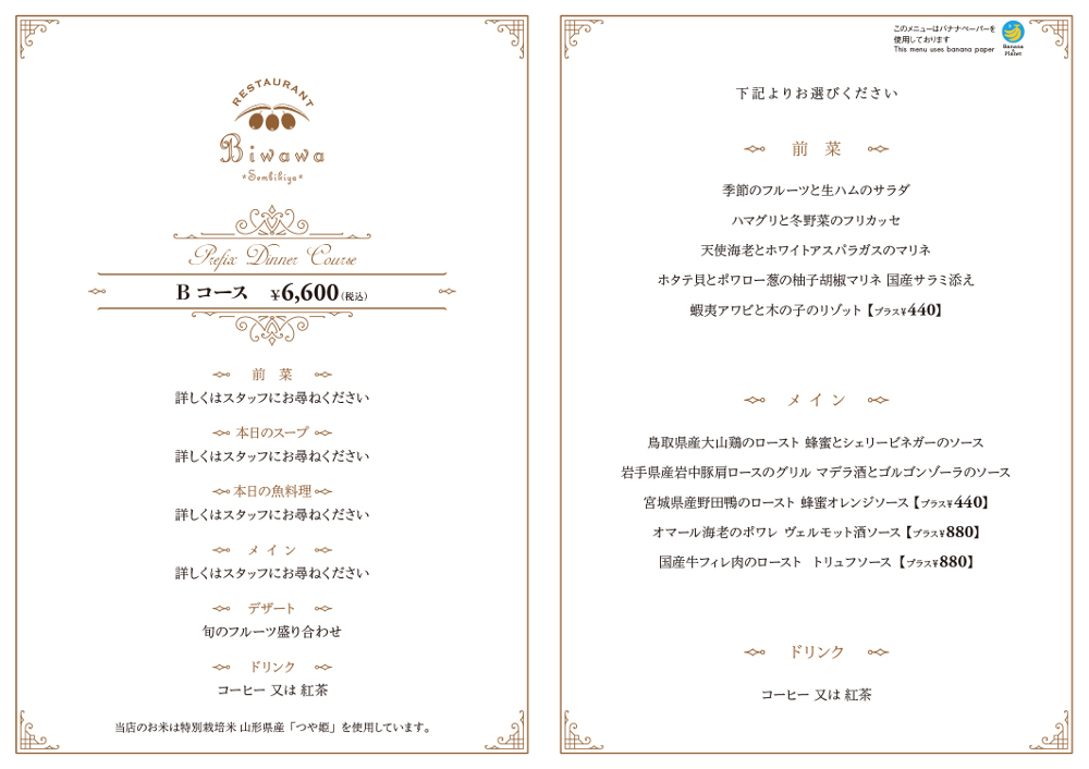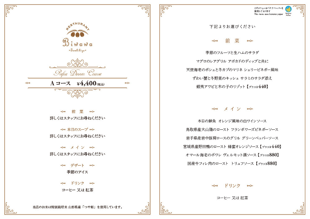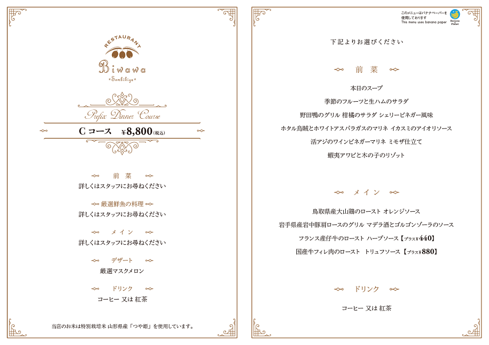 ディナーメニューのご案内