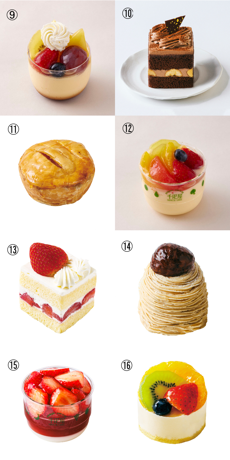 ※各ケーキの飾り付けの果物は季節により変更になる場合がございます。