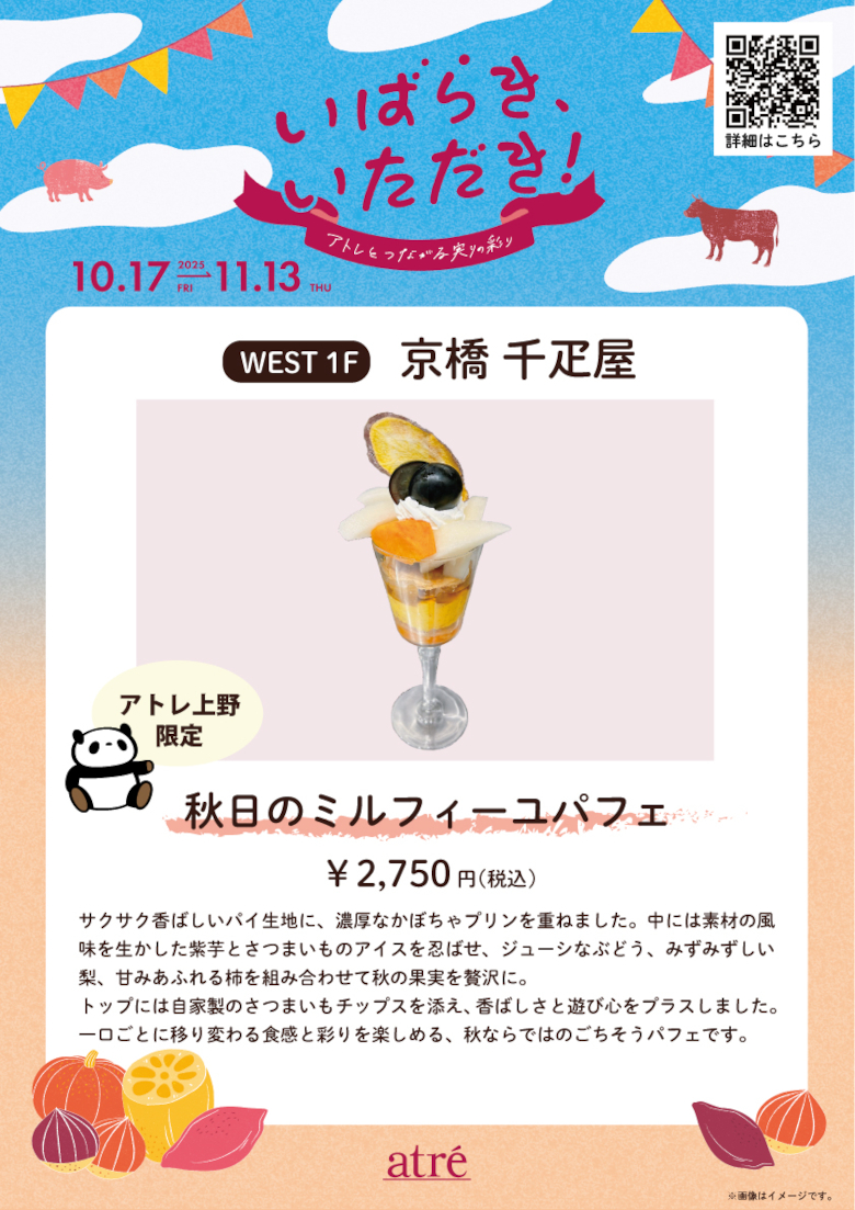 税込金額 2,750円 販売期間:2025年10月17日(金)~11月13日(木)予定 提供店舗:アトレ上野店 特定原材料:卵、乳、小麦 ※メニューは予告なく終了する場合がございます。 ※画像はイメージです。