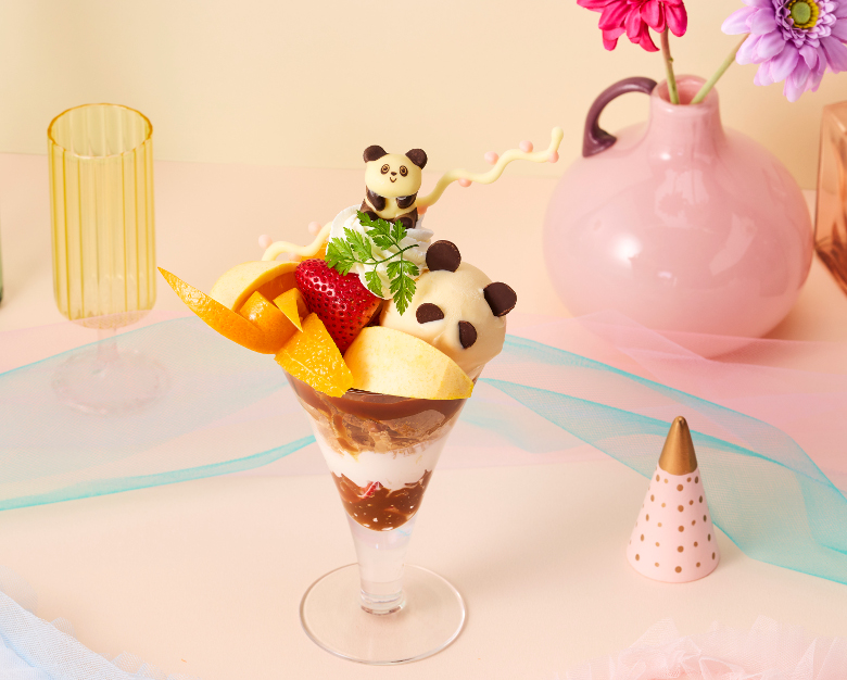 パンダカーニバルコラボメニュー。 みずみずしい柑橘と甘酸っぱい苺を使用したキャラメルパフェ。 可愛らしい見た目、味、共にご満足いただける一品です。