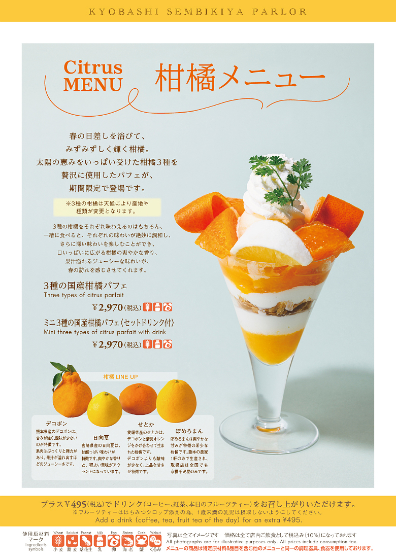 太陽の恵みをいっぱい受けた柑橘3種を贅沢に使用したパフェが