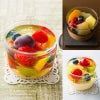 パイナップル、ぶどう、苺、キウイ、マンゴー、ラズベリー、ブルーベリーを閉じ込めた彩りあざやかなゼリー。