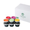 外箱を開けた瞬間まず目を引くのは、存在感のある黒を基調にした箱に、フルーツの彩りを思わせる綺麗な色合いの蓋。