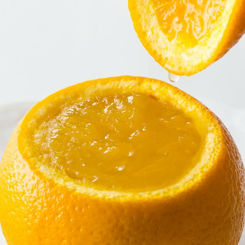 ふたの部分の果肉を絞ってゼリーにかけていただくと柑橘の風味が広がります。さっぱりとした柑橘の味わいをお楽しみください。