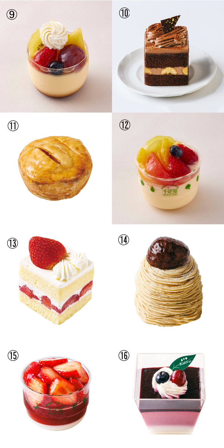 ※各ケーキの飾り付けの果物は季節により変更になる場合がございます。